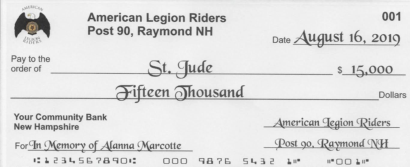 Bobby Marcotte $25,000! That’s the number raised by our 7th Annual Alanna Marcotte Memorial Ride! SMOKED last years number with less bikes UNBELIEVABLE Not only was I presented with a $25,000 check for st. Jude's hospital but also with this vest initiating me as an American legion post 90 honorary member.